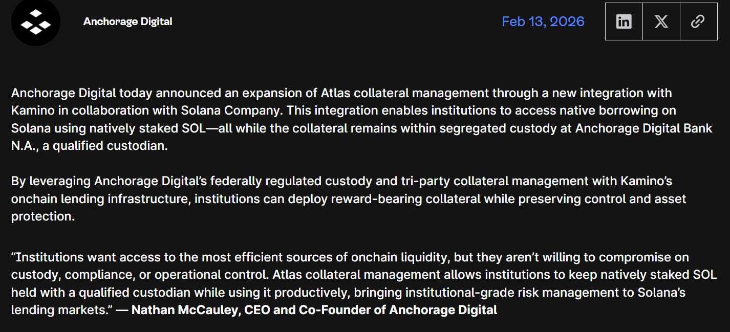 🦘 Solana Firm Stock Jumps 17% After Enabling Institutional Lending Against Staked SOL: Shares of the Solana-focused and Nasdaq-listed company (NASDAQ: HSDT) jumped as high as 17% after it announced a lending program that allows institutions to unlock liquidity by borrowing against natively staked SOL without the need for unstaking or selling tokens. The firm has partnered with Anchorage Digital and Kamino to facilitate the lending initiative.