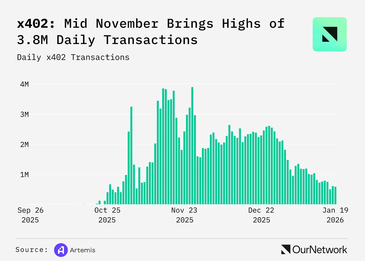 Crypto hasn’t been untouched by AI. Projects like Render and Akash are focused on providing a decentralized compute marketplace. The Graph and others are working on verifiable AI, ways of cryptographically proving systems’ inputs, outputs, and models. There’s also x402, a payments protocol launched by Coinbase which is a significant contender to become a key financial rail for AI agents. x402 came alive in October after its May 2025 launch.
