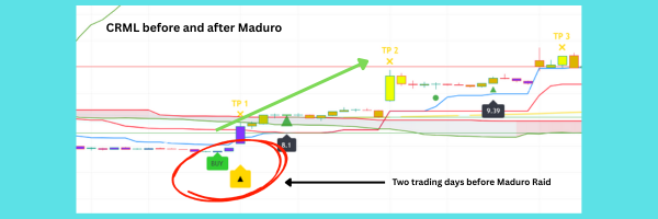 As you can see, the green All in One “buy” and the yellow “Institutional Algo” flashed on the CRML chart two trading days before the raid.