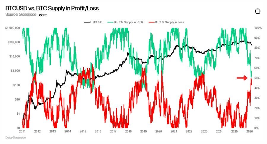 While downside risk has not fully dissipated, such elevated levels of supply in loss historically characterize the latter stages of bear cycles rather than their early phase. In structural terms, the market appears closer to a potential bottoming range than to the initial onset of contraction, even as volatility and fragility persist.