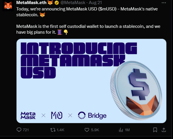 🚀 MetaMask set to launch mUSD stablecoin on Ethereum and Linea, issued by Stripe-owned Bridge: mUSD will be issued by Bridge, a Stripe-owned stablecoin issuance platform, and minted via M0’s decentralized infrastructure, MetaMask said Thursday. It added that mUSD will be fully backed 1:1 by “high-quality, highly-liquid dollar equivalent assets” with real-time transparency and cross-chain composability via M0’s liquidity network.
