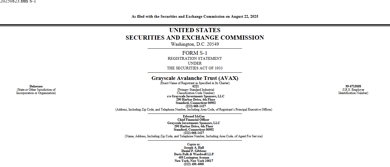 ⚖️ Grayscale Files to Convert Avalanche Trust to ETF:Crypto asset manager Grayscale submitted a registration statement for its Avalanche Trust to the U.S. Securities and Exchange Commission on Friday, seeking approval to “uplist” the investment vehicle and convert it into a full-fledged exchange-traded fund.