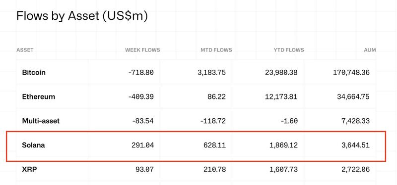 1. Amidst turbulent markets last week, SOL experienced one of its strongest weeks of institutional inflows with over $291M pouring in. September inflows now stand at $628M—over 7x larger than ETH.