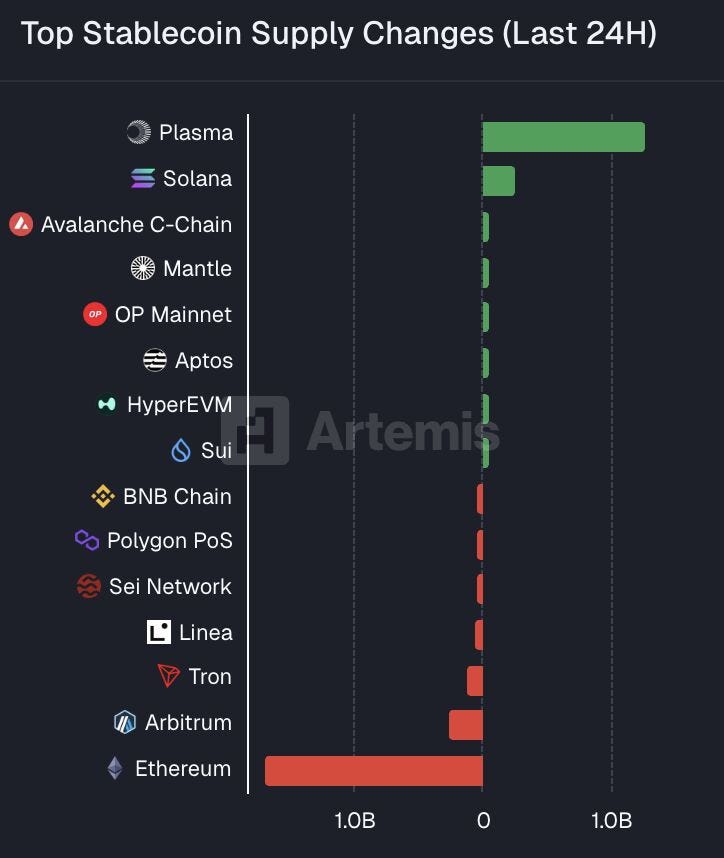 2. Plasma has now seen over $1.3B of stablecoin deposits within the last 24 hours alone, more than any other chain combined. This pushes total stablecoin liquidity on Plasma to $3.9B in just 3 days. Absolutely wild activity, with lots of wild incentives.