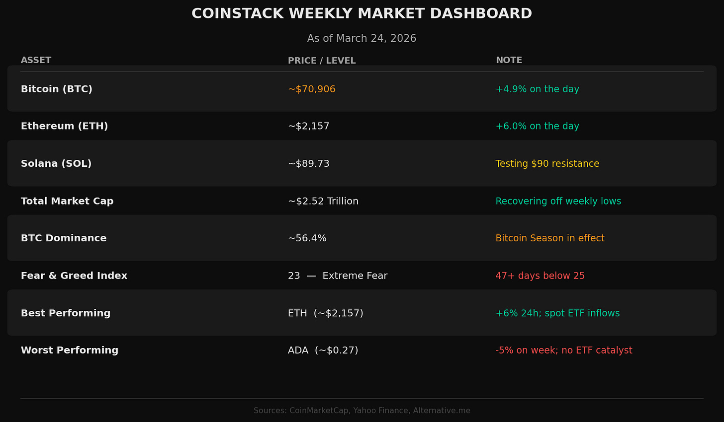 Coinstack is published every Tuesday. Nothing in this newsletter constitutes financial or investment advice. All information is sourced from publicly available data and should be independently verified.